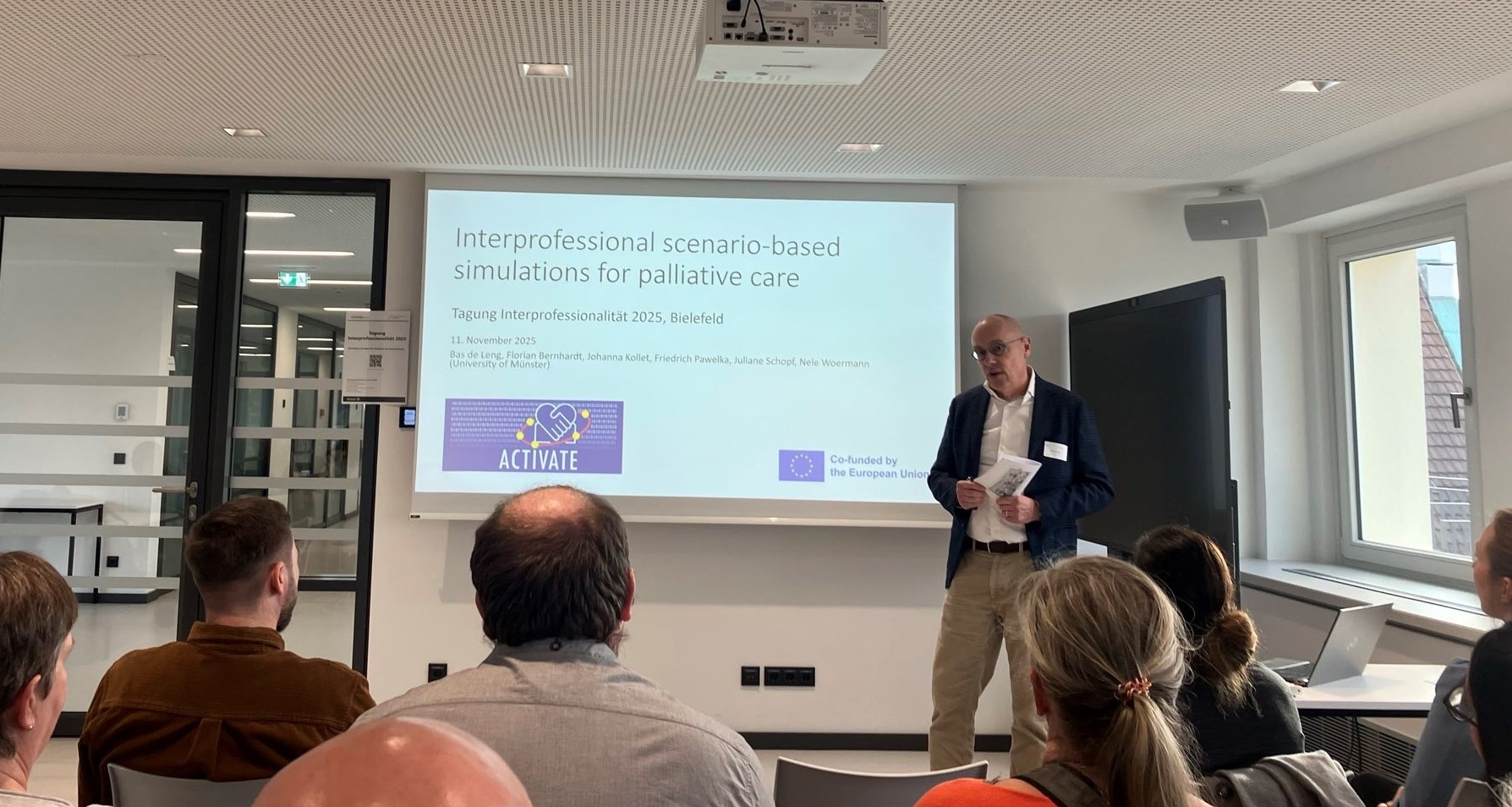 In the context of the IPC focus area, Bas de Leng from the University of Münster presented an innovative simulation developed as part of the ACTIVATE project to promote interprofessional collaboration in palliative care.